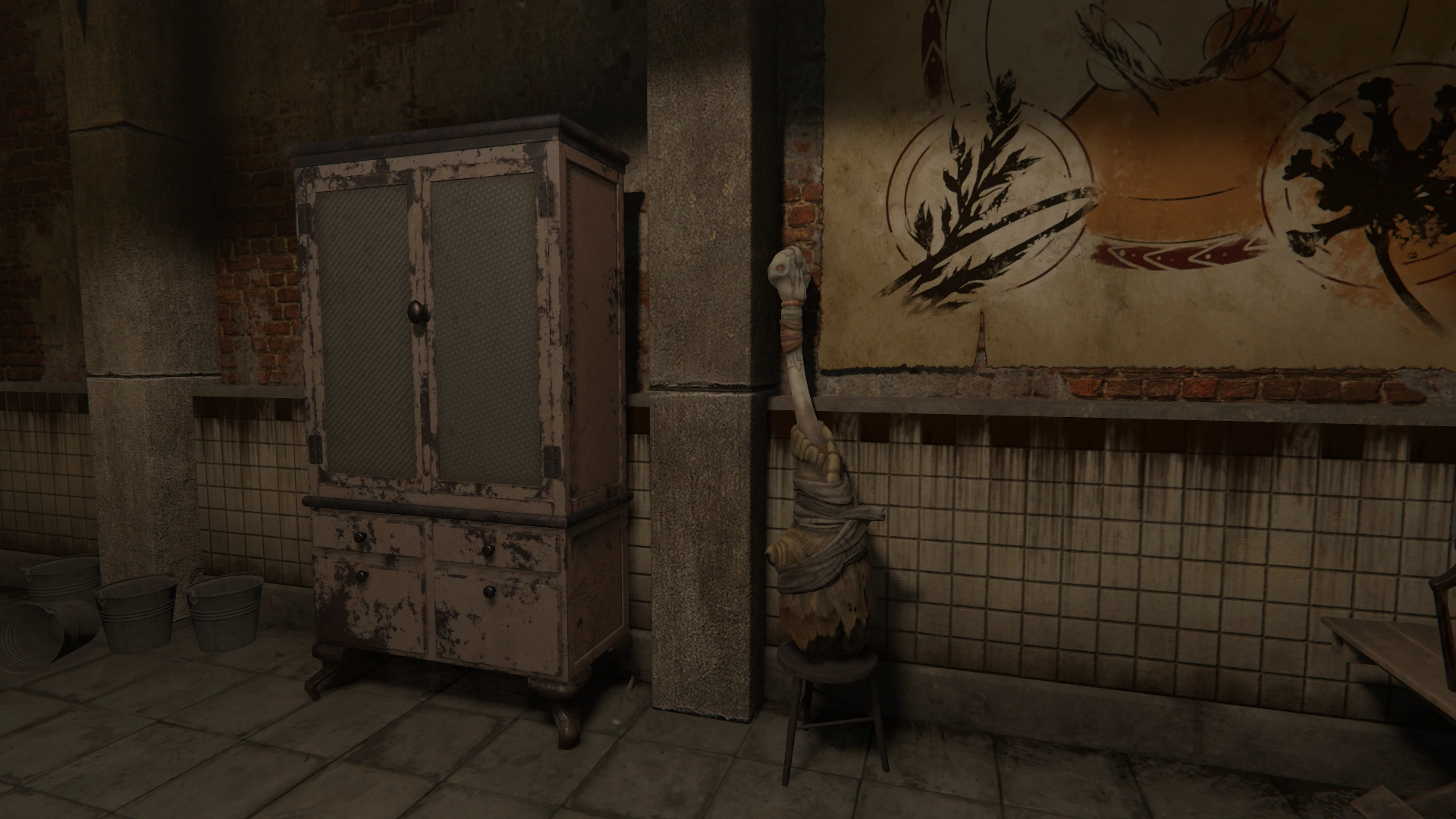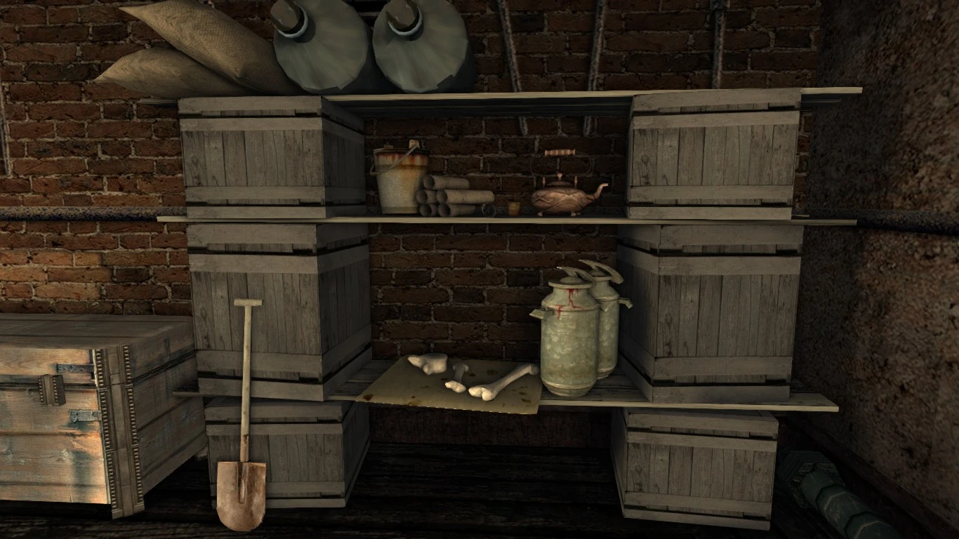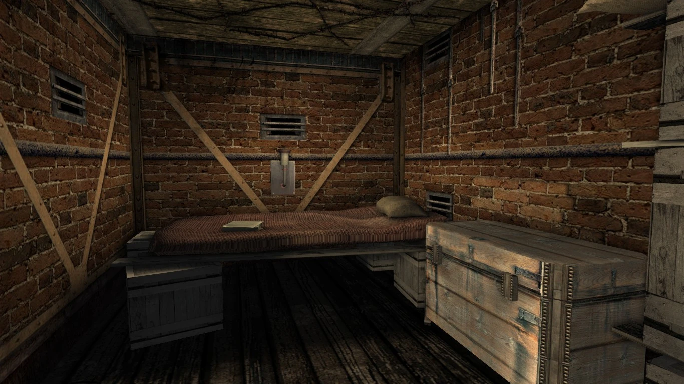 В бывшем убежище Исидора, предоставлено тайно Младшим Владом Ольгимским установлен алембик, предназначенный для создания тинктур, повреждённый смеситель, в котором после ремонта можно будет создавать обезболивающие и антибиотики, верстаки, предназначенные для ремонта оружия и одежды, а также расширения инвентаря, шкаф для хранения вещей, самодельная кровать и часы. В центре основной "комнаты" стоит большой каменный операционный стол, над которым висит потускневшая лампа. На стенах развешаны плакаты, со строением человеческого тела и степными тавро, а также принципом сочетания трав, на импровизированных столах лежат заметки Исидора. На полках и столах стоят коробки и ящики с инструментами, попадаются бычьи черепа, промышленный мусор, имеются редкие стулья и табуреты, рядом с алембиком стоят ступка и пестик. Зона отдыха хозяина убежища отделена грязной ширмой, а рядом со шкафом стоит Кукла Человека. Освещение скудное, состоящее в основном из масляных ламп, но кое-где ещё горят электрические лампы. Проход на территорию самого завода перекрыт металлической балкой, а лестница, ведущая на второй этаж завалена мусором. Также на одной из стен висит умывальник, для которого Спичка будет раз в день приносить чистую воду, достаточную для наполнения трёх бутылок. Питьё "напрямую" из умывальника утоляет меньше жажды, чем питьё из бутылки. На улице, перед входной дверю стоят несколько бочек, а на стене висит масляная лампа.