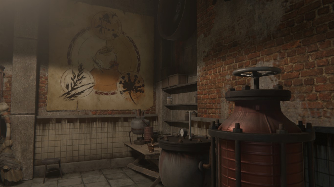 Расположенное в подвале четвёртого заводского корпуса тайное убежище было превращено Исидором в лабораторию для работ с твириновыми экстрактами. Подвал оборудован местом для сна, дорогостоящим оборудованием, обставлено базовой мебелью. По стенам развешаны разнообразные рабочие схемы, на столах лежат записи, по углам и полкам расставлены ящики, контейнеры, и прочий хозяйственный инвентарь. Освещение скудное, многие лампы выведены из строя.
