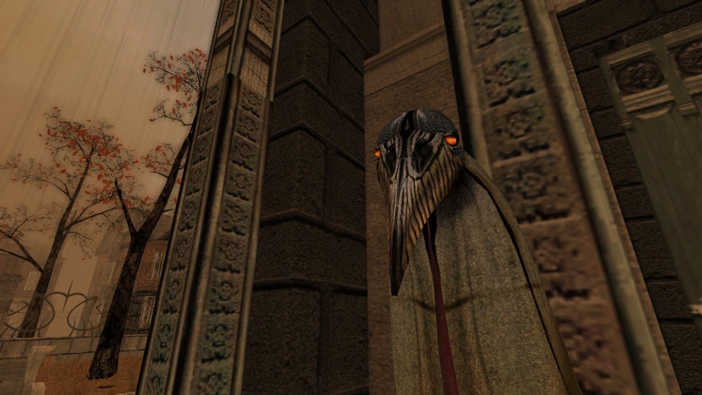 - За всю игру можно встретить всего двух Мортусов без своего костюма - это Мортус-истопник из Театра на восьмой день (который на деле окажется Григорием Горьким, человеком Каиных и, по совместительству, мортусом номер 6) и Мортус № 12 из кошмара Бакалавра в дополнении "У Мраморного Гнезда". Оба используют модель Ворон-Патрульный, но у Истопника будет отсутствовать фуражка.