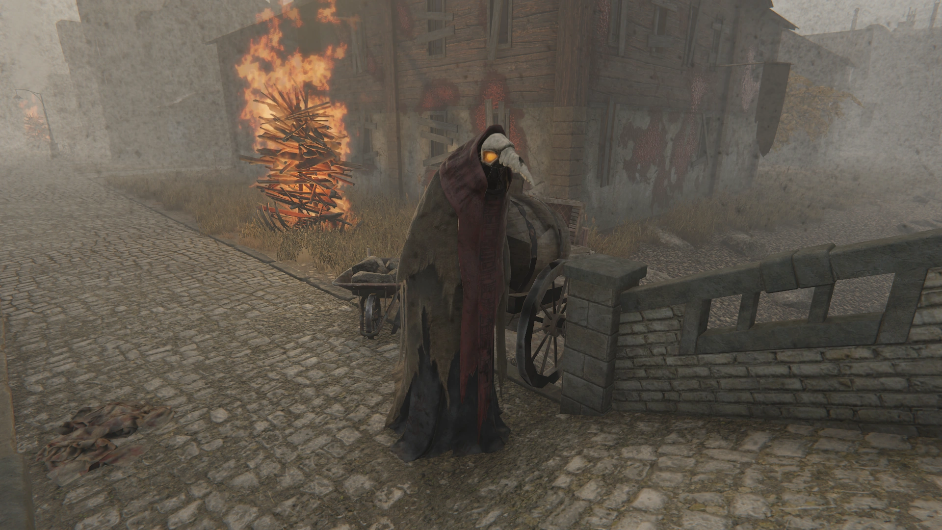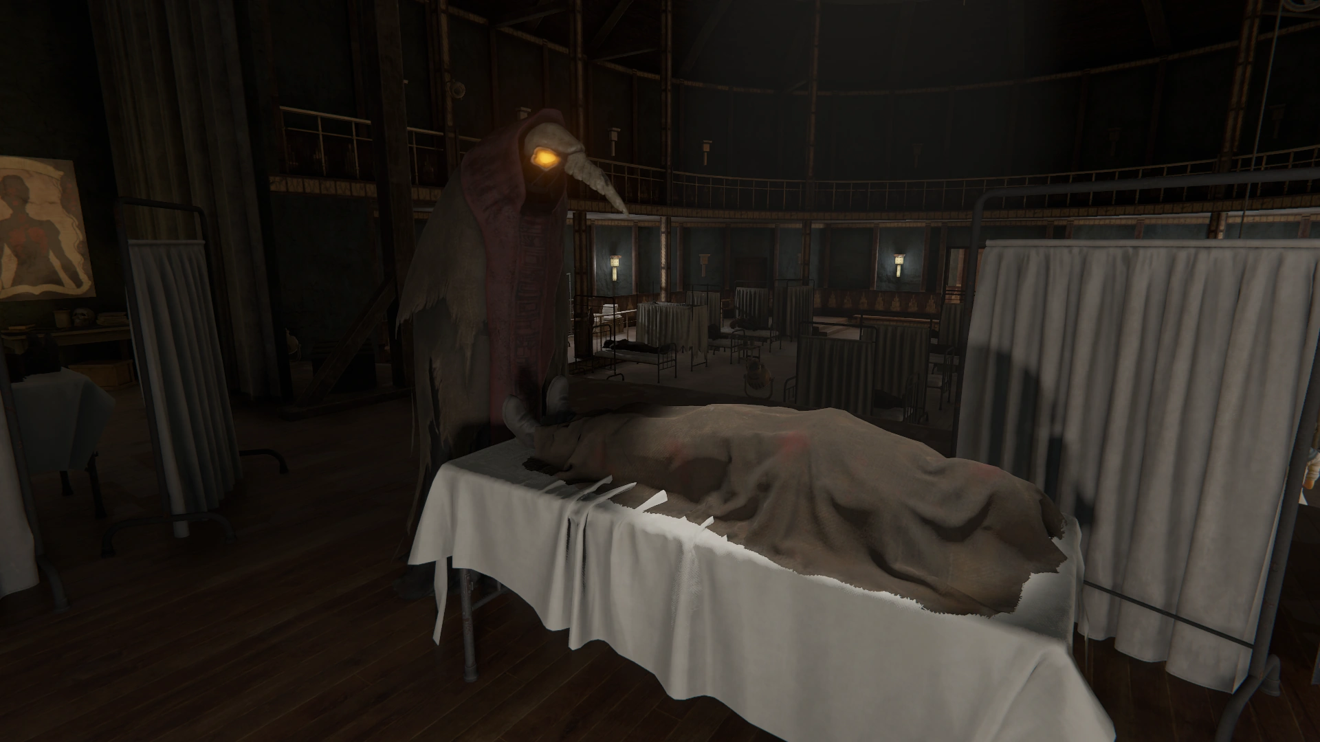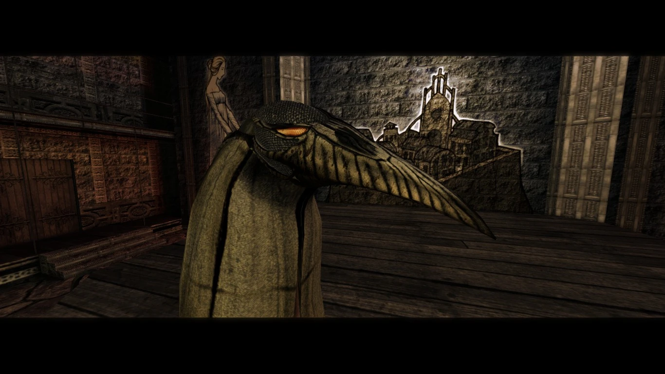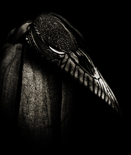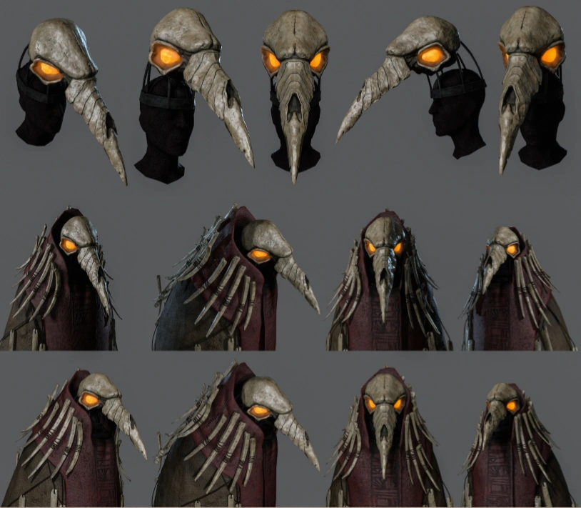 | “ | Мортусы — санитары-добровольцы из местных — защищаются от инфекции плащами, одолженными из театральных запасников. Это — плащ от костюма Жнеца, аллегории Смерти. Маска Муу Шубуун, «злой птицы». Часть костюма Жнеца из местного театра. Прорезей для глаз нет: маска крепится на макушке актера, а сцену тот видит через отверстие в плаще | „ |