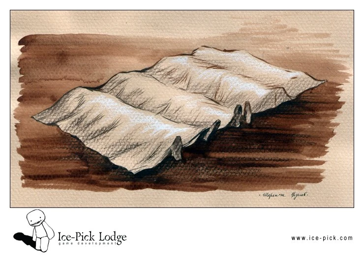- ↑ Лара Равель: Что ты знаешь об этой болезни? Её назвали Песочной Язвой, ты знаешь? Гаруспик: Почему песочной? Лара Равель: Из-за шершавой кожи. Она всё сушит. Ну и ещё - люди по-прежнему верят, что она выползла из земли. Все эти байки про земляного голема, про шабнак с глиняными ногами... ну это... - Pathologic 2