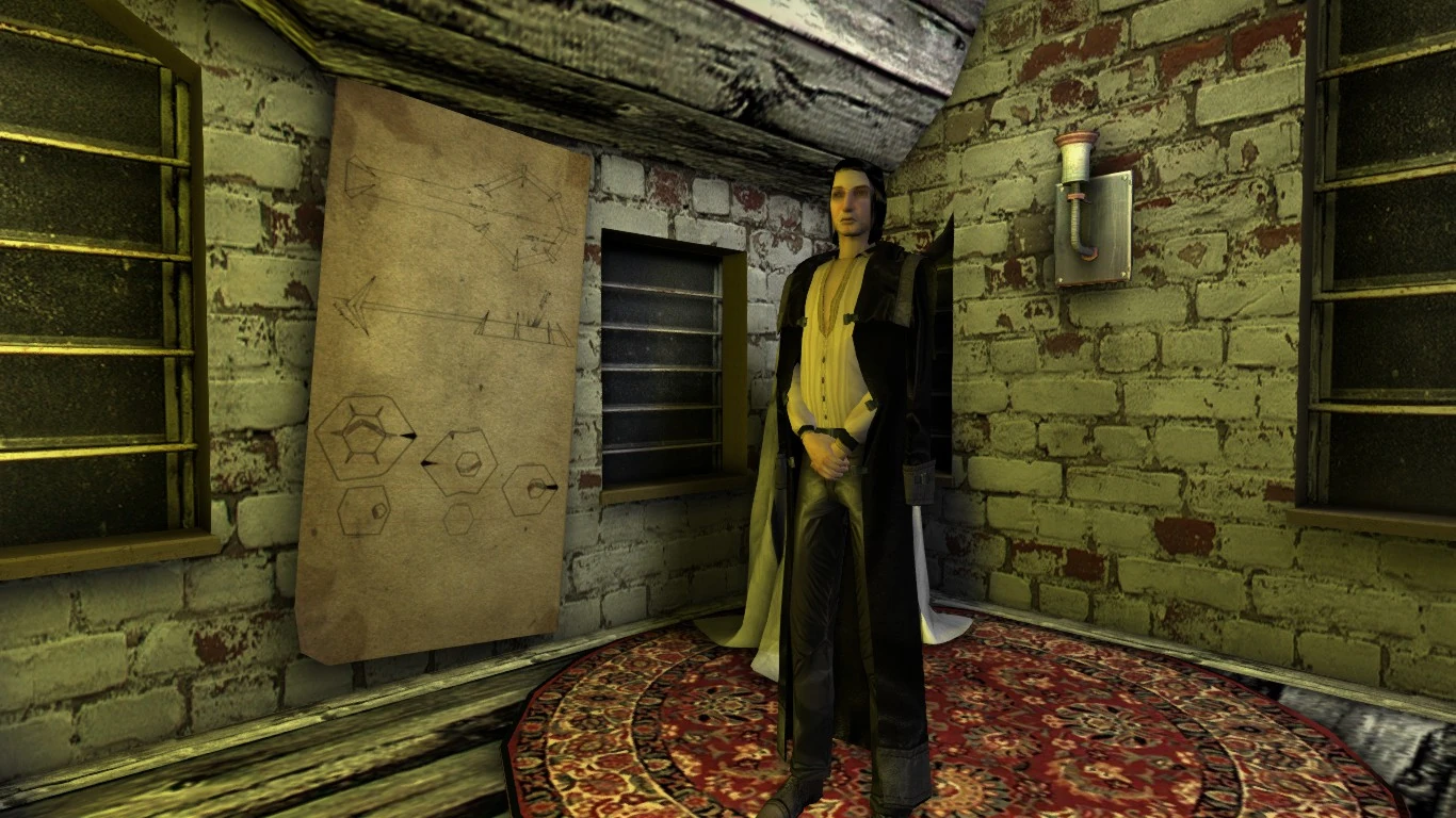 | “ | Гениальный архитектор в состоянии творческой депрессии. Чувствует (а порой и видит) вещи, которые не может передать словами, и его это раздражает. Порой будто бы теряет интерес к тому, что говорит, на полуслове — как человек, который потерял надежду, что его поймут. Ни в коем случае нельзя превратить его в пьяницу-клоуна! Персонаж трагический, должен вызывать симпатию и сочувствие. |