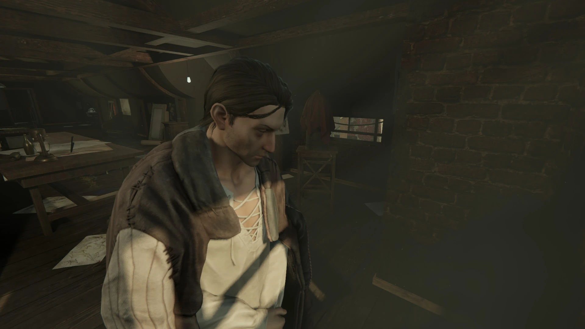 Пётр в боковой комнате мансарды