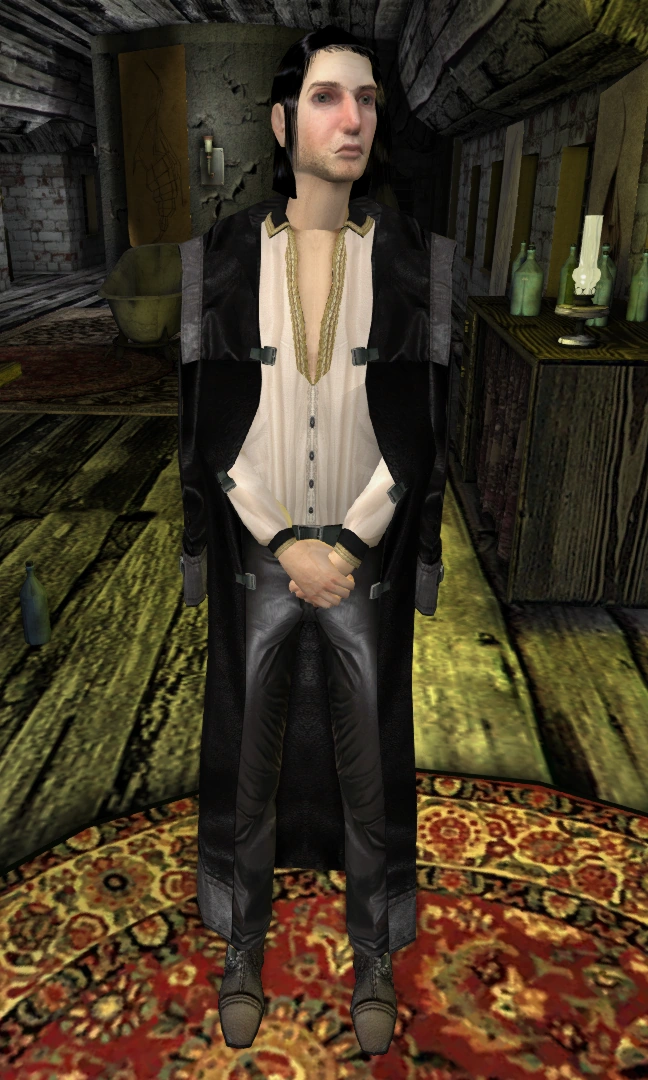 Человек совершенно «не от мира сего». Постоянно пьёт твирин и, по-видимому, страдает алкоголизмом, а кроме того, из-за того же твирина подвержен галлюцинациям. Намного спокойнее брата: говорит тихим ровным голосом и менее уверен в материальных, практических вопросах. С куда большей страстью относится к своим творениям, а потому работает точнее и эффективнее, но неспособен воплотить в жизнь собственные идеи без помощи брата.