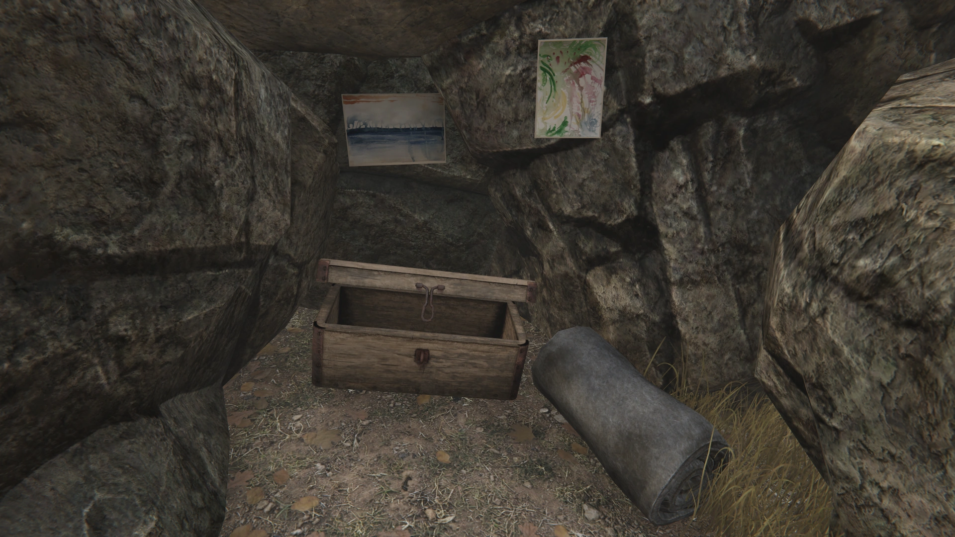 An opened children's cache, located by the Shelter.