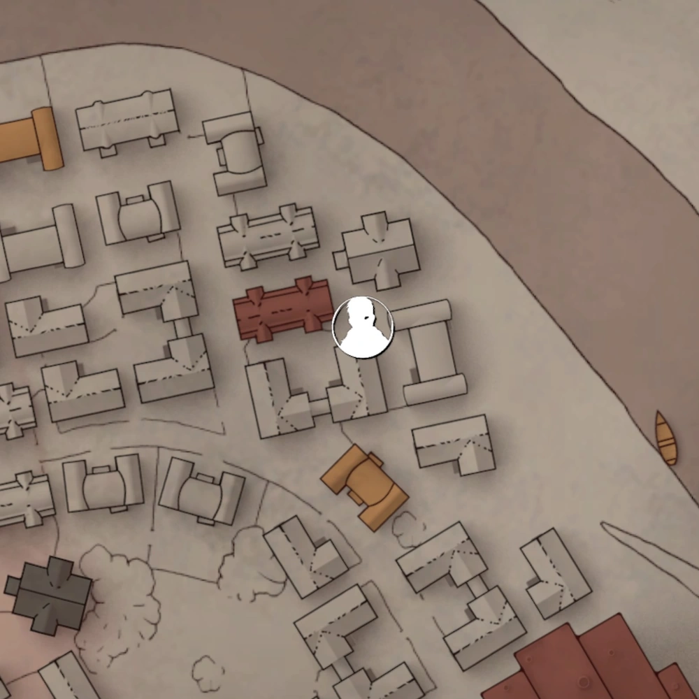 - One group of children, represented by Tatochka, is located northeast of the Crucible. They tell the Haruspex of a cache hidden in the Gut, south of the Lump. This cache will contain the Warm Note, which will direct the Haruspex to the Nutshell.