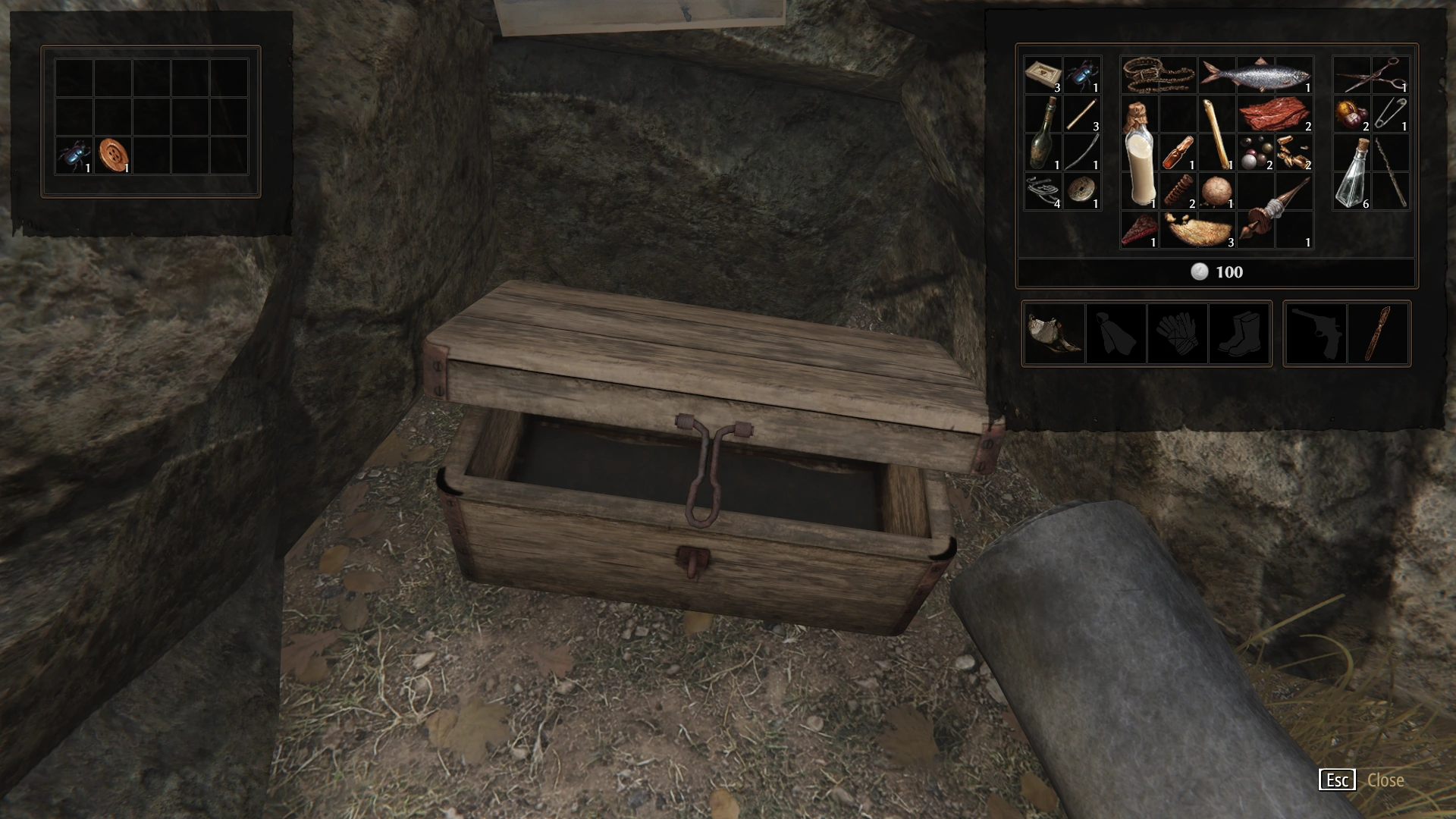 Inventory screen when looting a children's cache.
