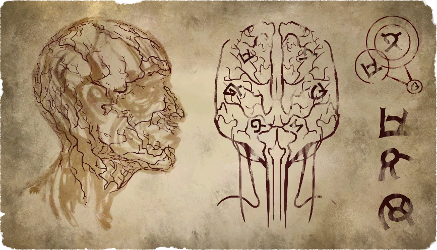After revealing a symptom with a tincture, the Haruspex will comment on it. A glyph or glyphs corresponding to the Layer(s) at hand will also be revealed.