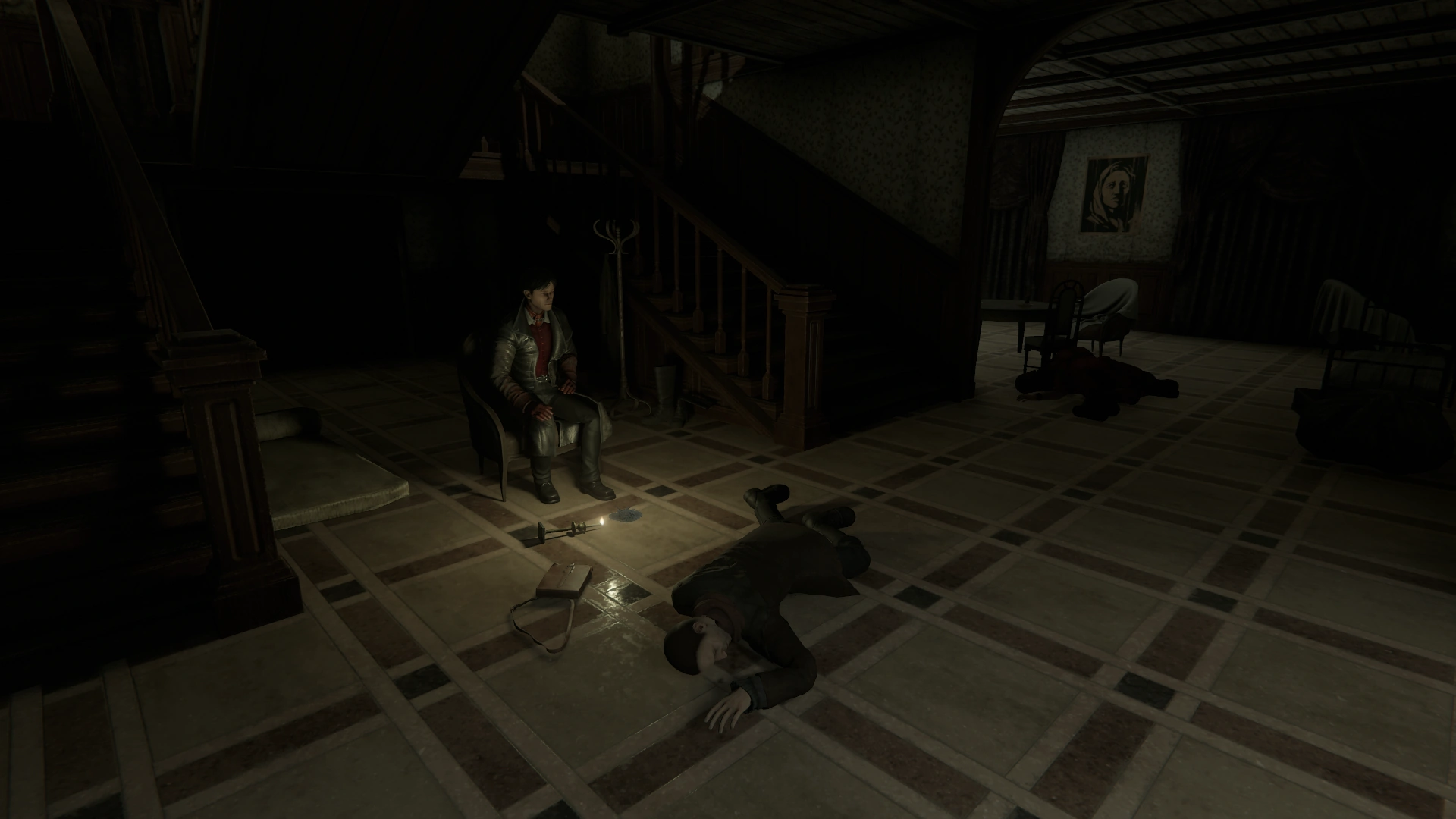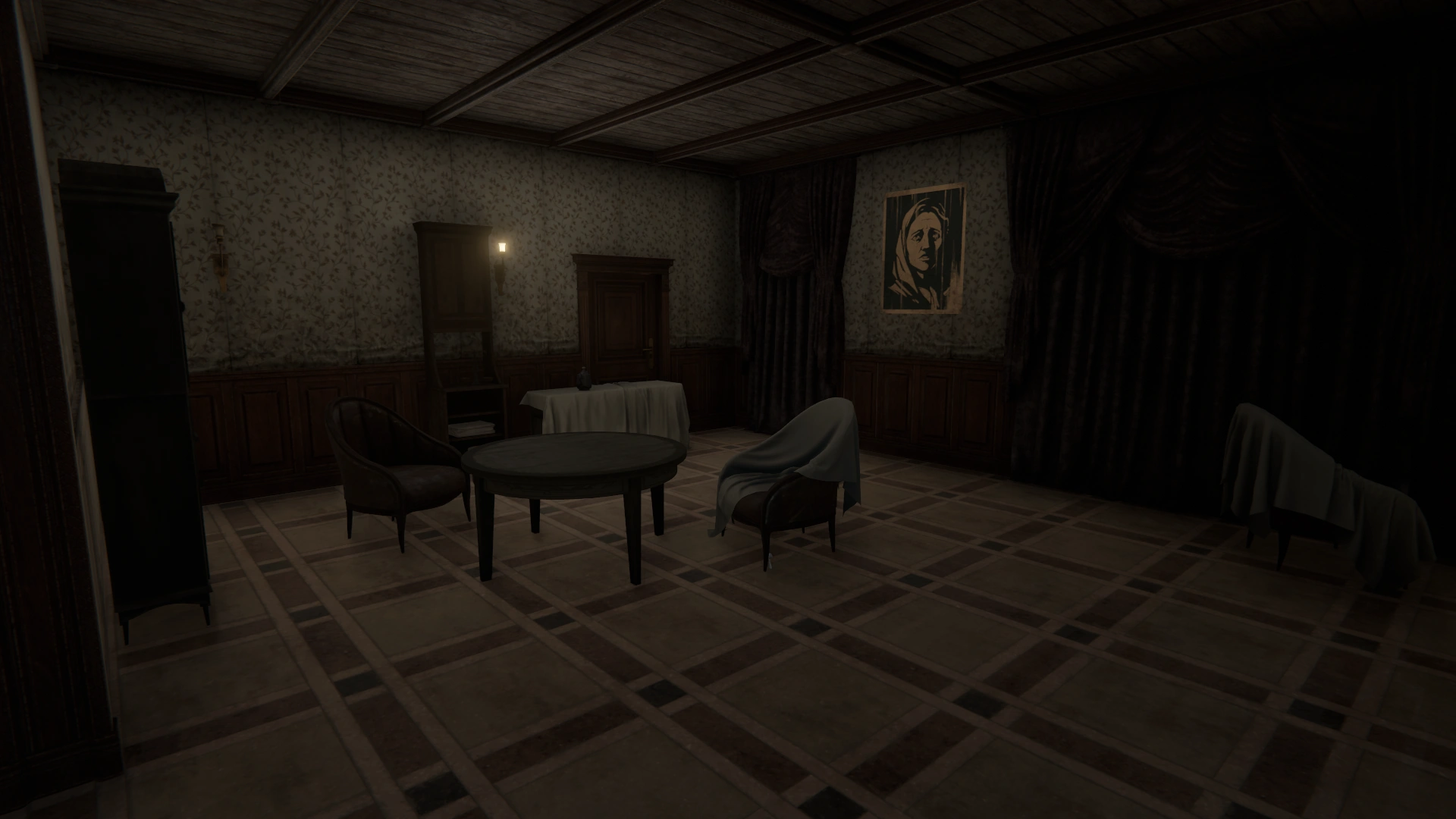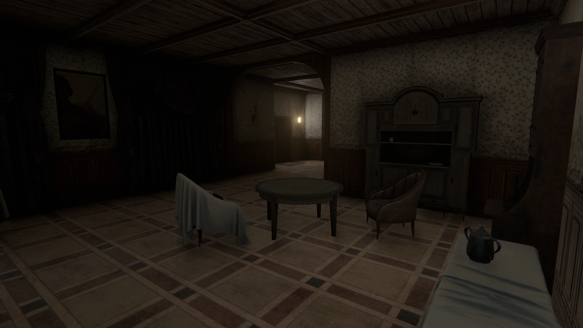 The Shelter contains a number of cabinets, all but one of which can store items indefinitely. It also has a sofa where the Haruspex may sleep, and a clock to save at. In the room opposite from where Lara resides, there is a large cabinet that is not safe for the player's stored items, as it will occasionally be stocked with items from Lara.